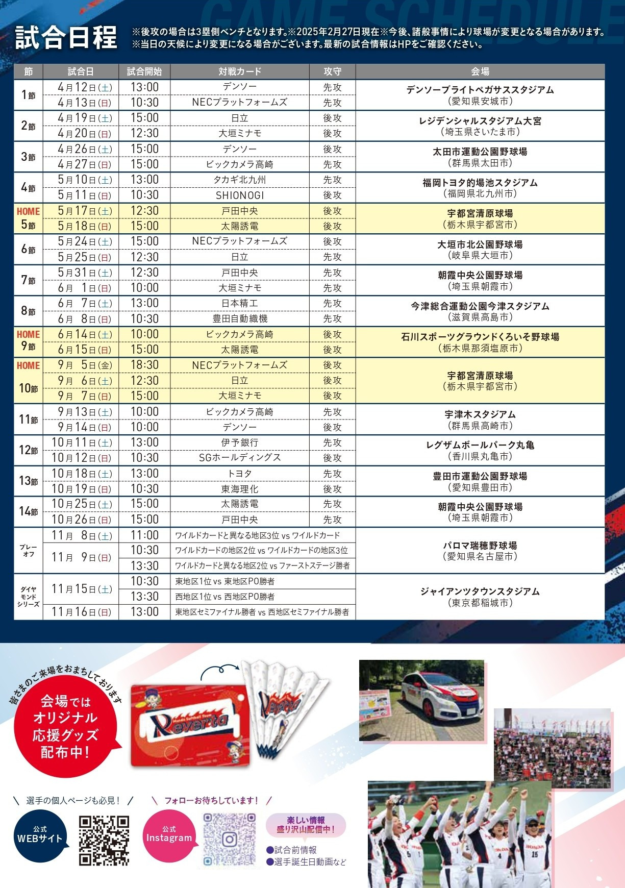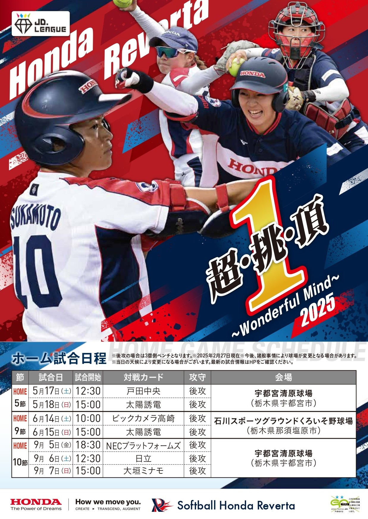 世界最強のソフトボールリーグ、「JDリーグ女子ソフトボール大会」が2025年5月17日(土)・18日(日)に宇都宮清原球場で開催されます。地元チームの「Honda Reverta」の試合となりますので、是非、お出かけください。