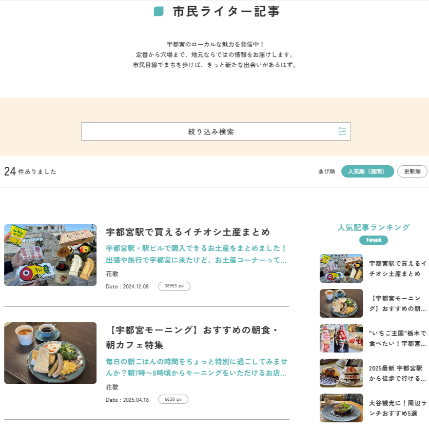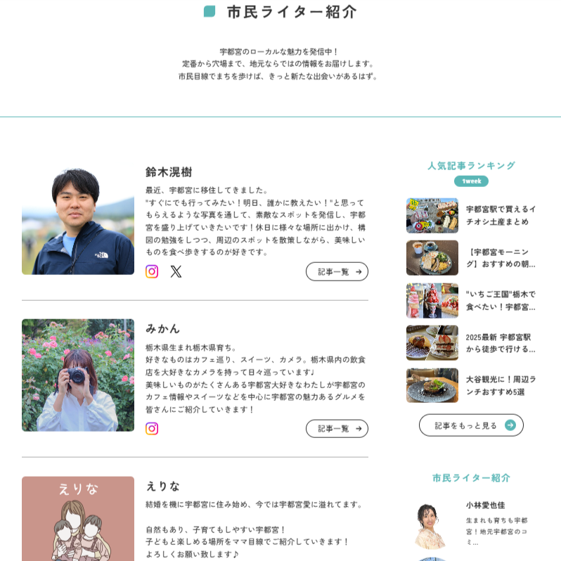 (一社)宇都宮観光コンベンション協会では、公式観光WEBサイト「宇都宮観光ナビ」で、宇都宮の魅力を写真と紹介文で全国に発信していただく「宇都宮市民ライター」を募集しています。ぜひ、この機会に公式観光WEBサイトで連載ページを作り、あなたならではのセンスで宇都宮の魅力を発信してみませんか?