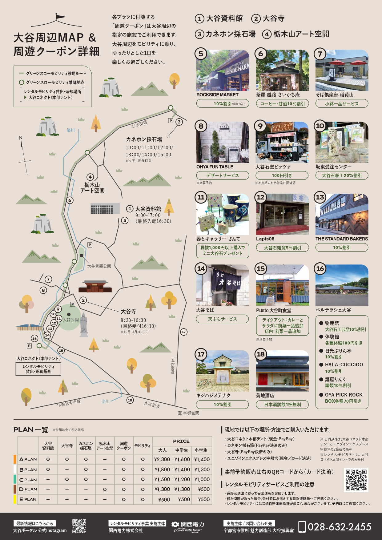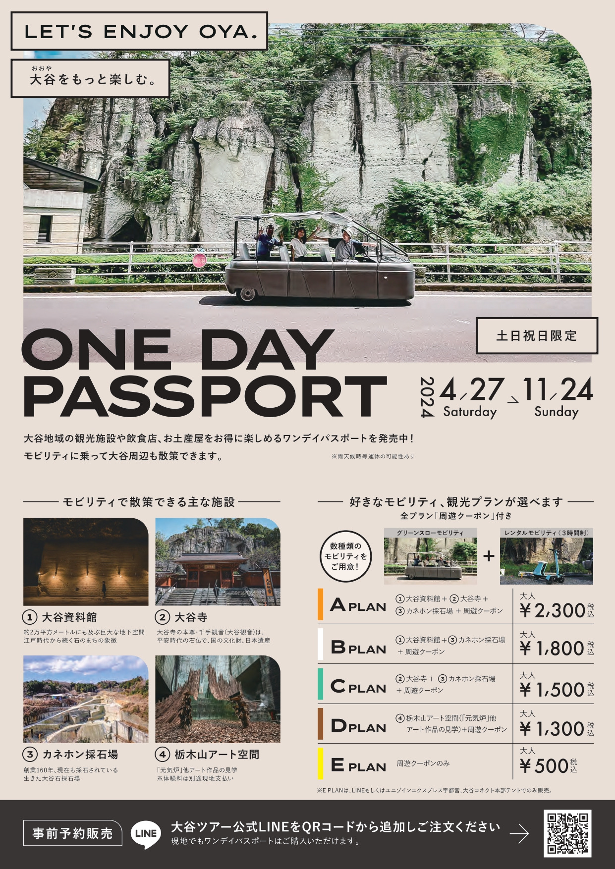 「ワンデイパスポートの販売・グリーンスローモビリティの運行」のお知らせ 2024-05-01 お知らせ 大谷地域の交通混雑の緩和や周遊性の向上に向けて、これまで実施してきた社会実験の成果を踏まえ、サービス内容の充実を図るとともに、地元観光団体等と連携しながらワンデイパスポートの販売・グリーンスローモビリティの運行を行います。のんびりと大谷観光を楽しみませんか。 関連リンク 詳しく見る