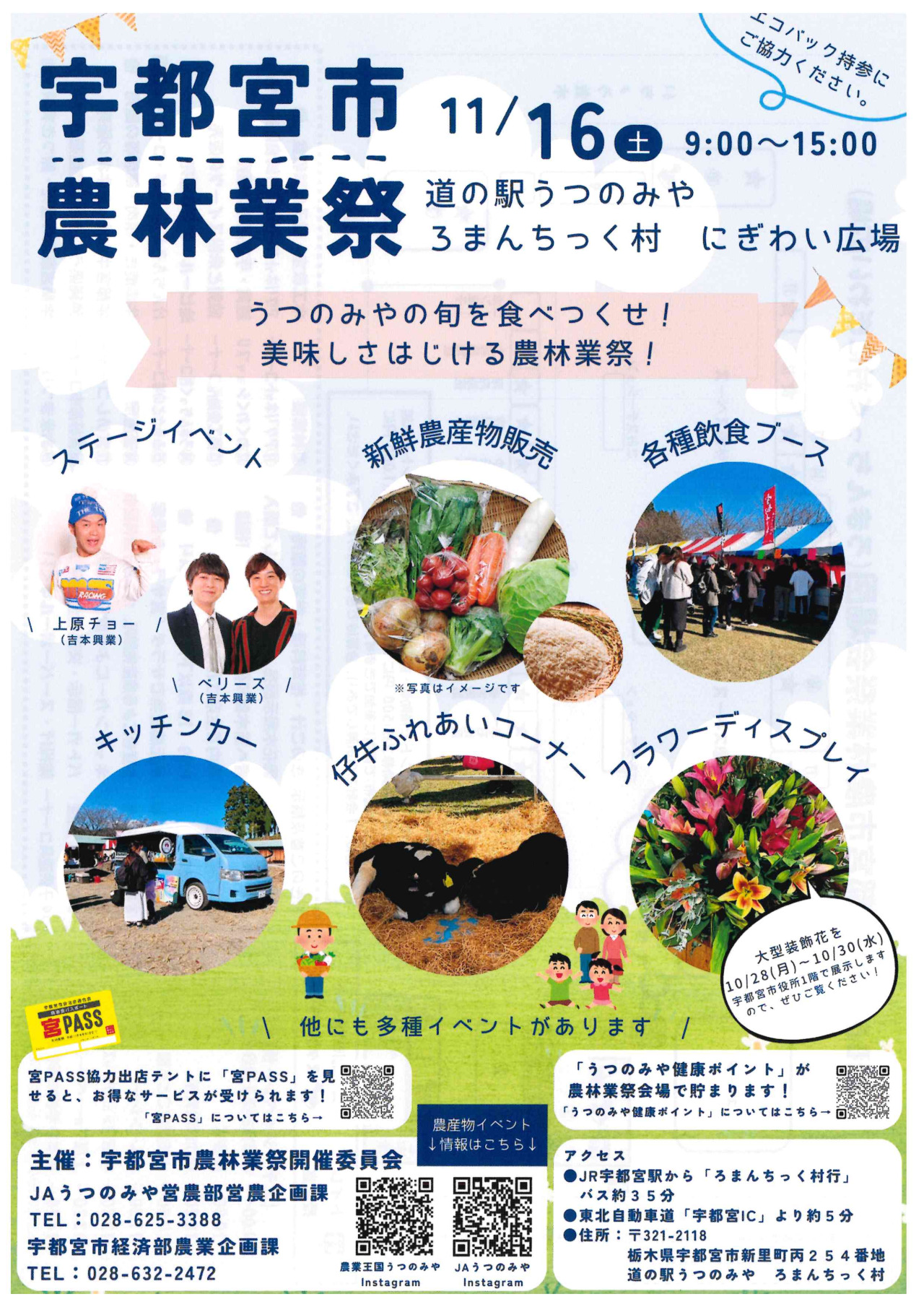 2024年11月16日(土)、道の駅うつのみや ろまんちっく村で「宇都宮市 農林業祭」が開催されます。