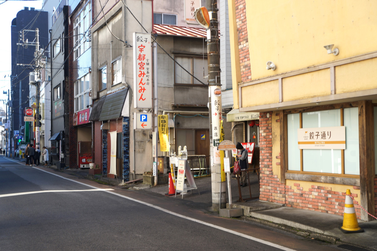 宇都宮みんみん本店をはじめ、有名餃子店が立ち並ぶ餃子通り。焼きたて餃子の街灯、横断幕に電柱の看板、自動販売機、マンホールもよく見ると小さな餃子が集合!餃子好きなら一度は訪れたい餃子の聖地です。