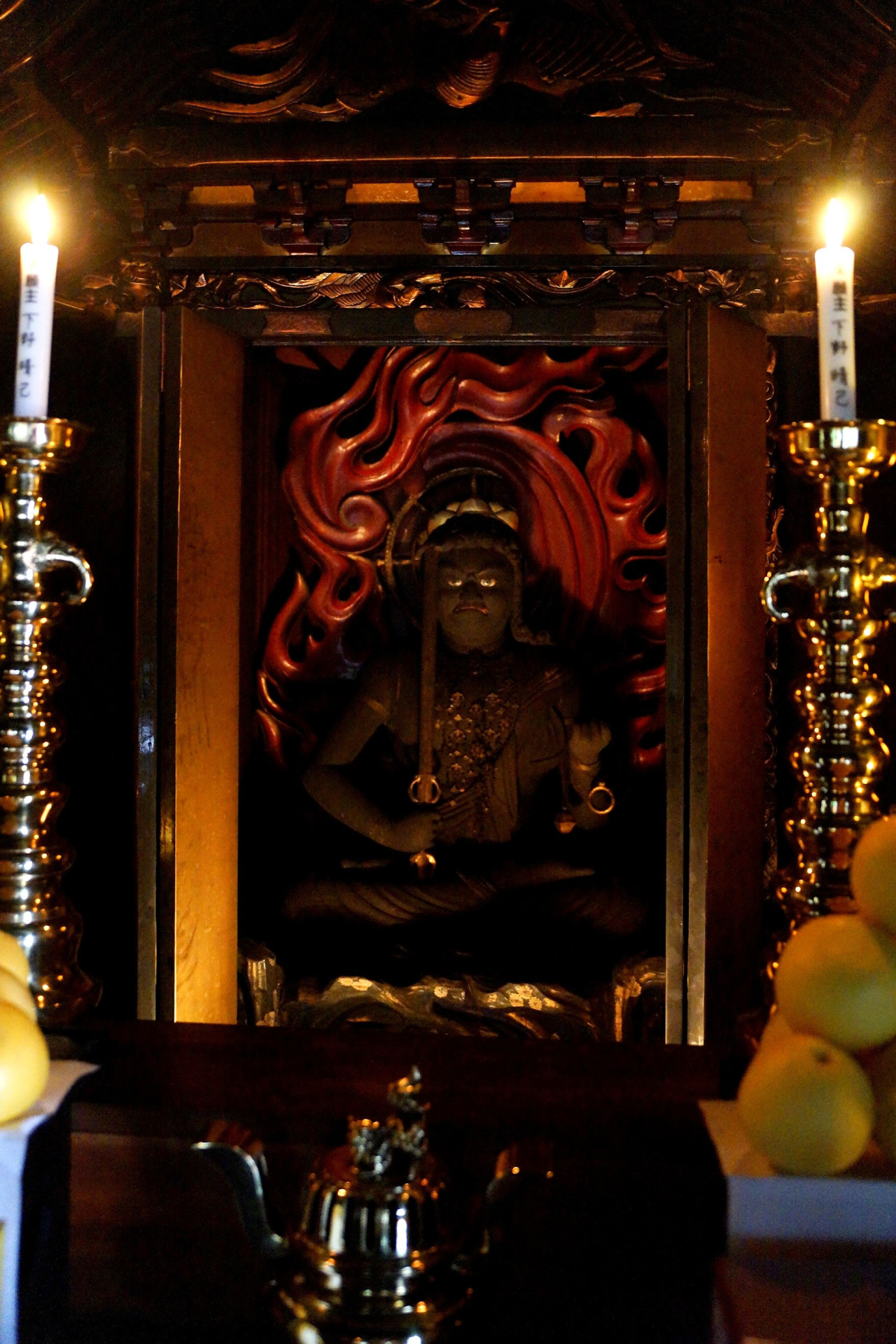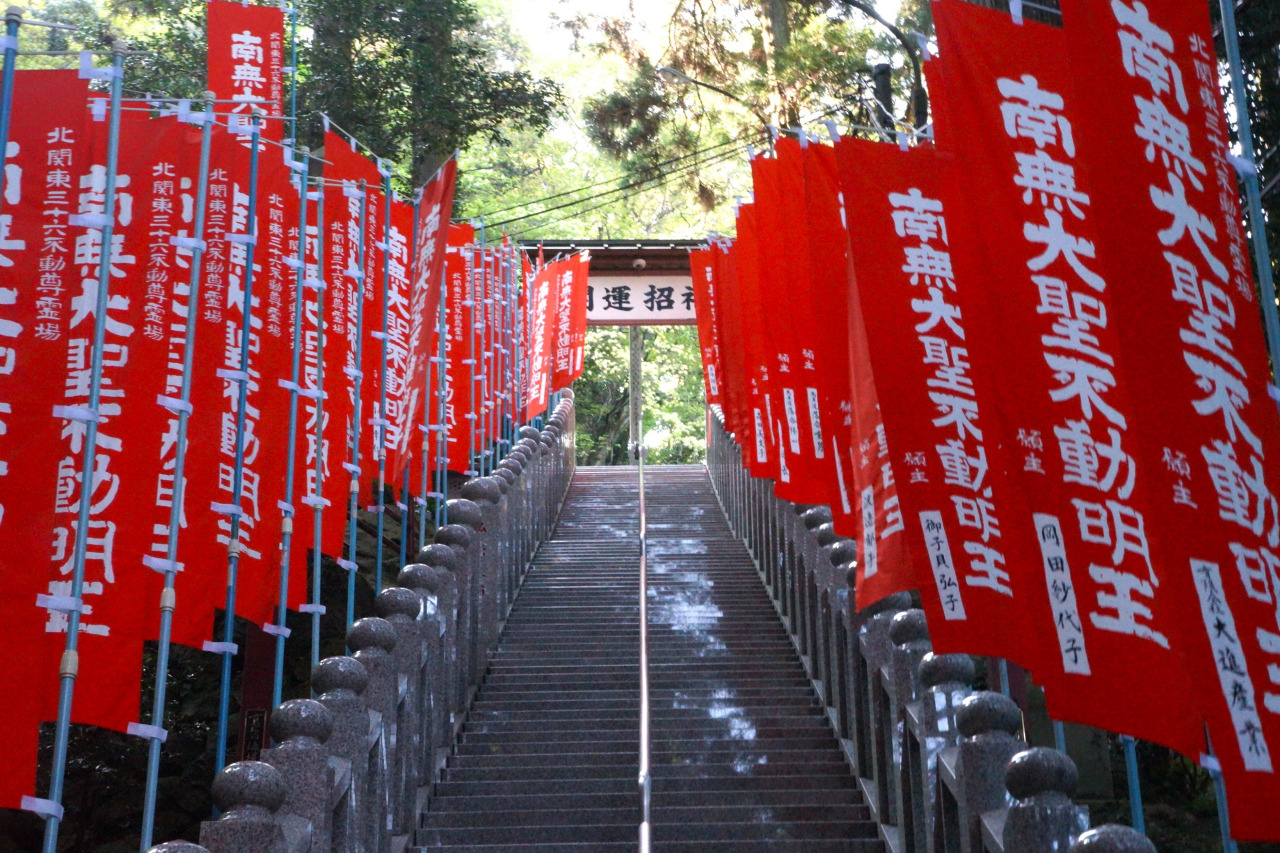 多気山の中腹に位置し、北関東三十六不動尊霊場の第十八番札所で「多気山不動尊」の名でも知られています。本尊の不動明王坐像は、高さ1.73mの寄木造りで平安時代後期に製作されたと伝えられ、さまざまなご利益を求め多くの方々から信仰を集めています。弘仁13(822)年、日光開山勝道上人の弟子尊鎮法師により創建されました。