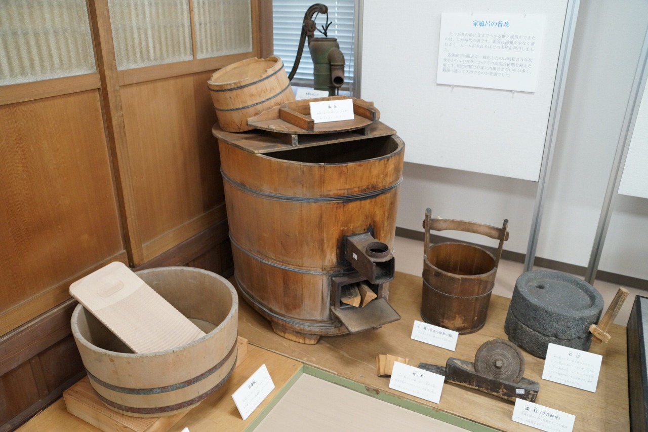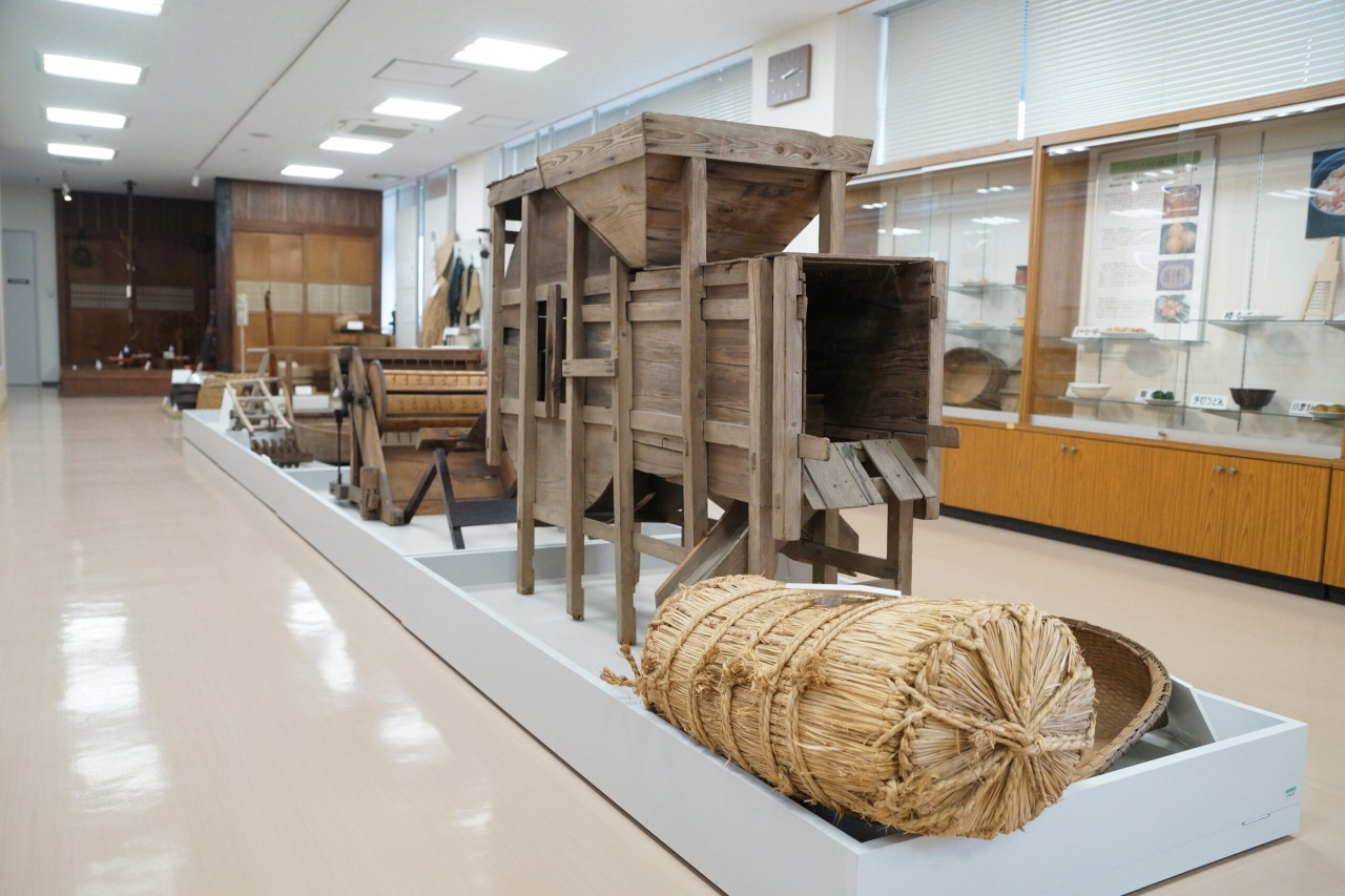 展示内容は、民具コーナー(衣食住の生活の中で使われた用具)・農具コーナー(脱穀機・田舟・草取り機等)・民俗芸能コーナー(指定文化財なっている獅子舞や羽黒山神社の梵天祭り等の写真パネル展示)があります。