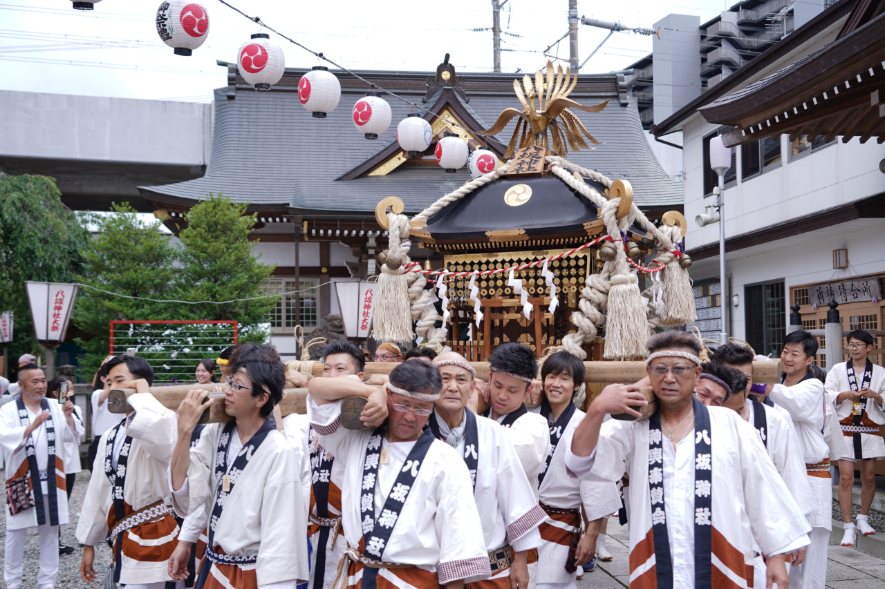 春祭、秋祭で太々神楽奉納されるほか、天王祭では神輿が出御するだけでなく多くの屋台が立ち並び賑わいます。1063(康平6)年、当時の宇都宮城城主・藤原宗円が本丸を築城の際、鬼門の鎮護として奥州街道の出入口に当たる今泉の地に神明宮を建立したのが始まりです。