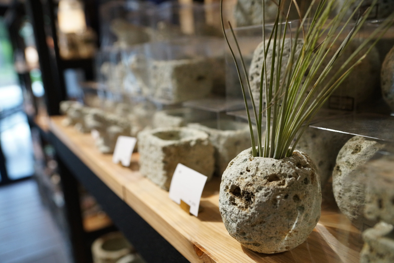 県内のメーカーや作家の工芸品などが揃う。大谷石に囲まれた特別な空間で、ガレットなどの軽食やカフェメニューをイートインでお楽しみいただけます。