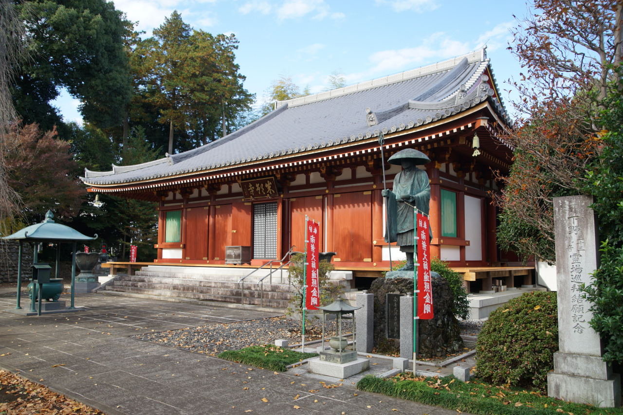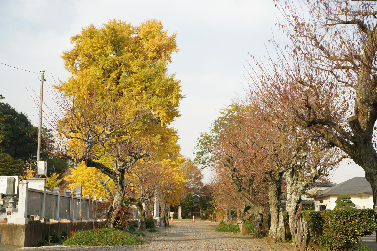 創建は765(天平神護元)年、日光を開いた勝道上人の開山と伝えている。樹齢約500年のいちょうの巨木は市の天然記念物で、鎌倉時代の武士・安達藤九郎盛長が植えたという伝説がある。門前を通る市道406号線は、「成願寺街道」と呼ばれており、大いちょうは街道を通行する人の目印となっていたかもしれない。