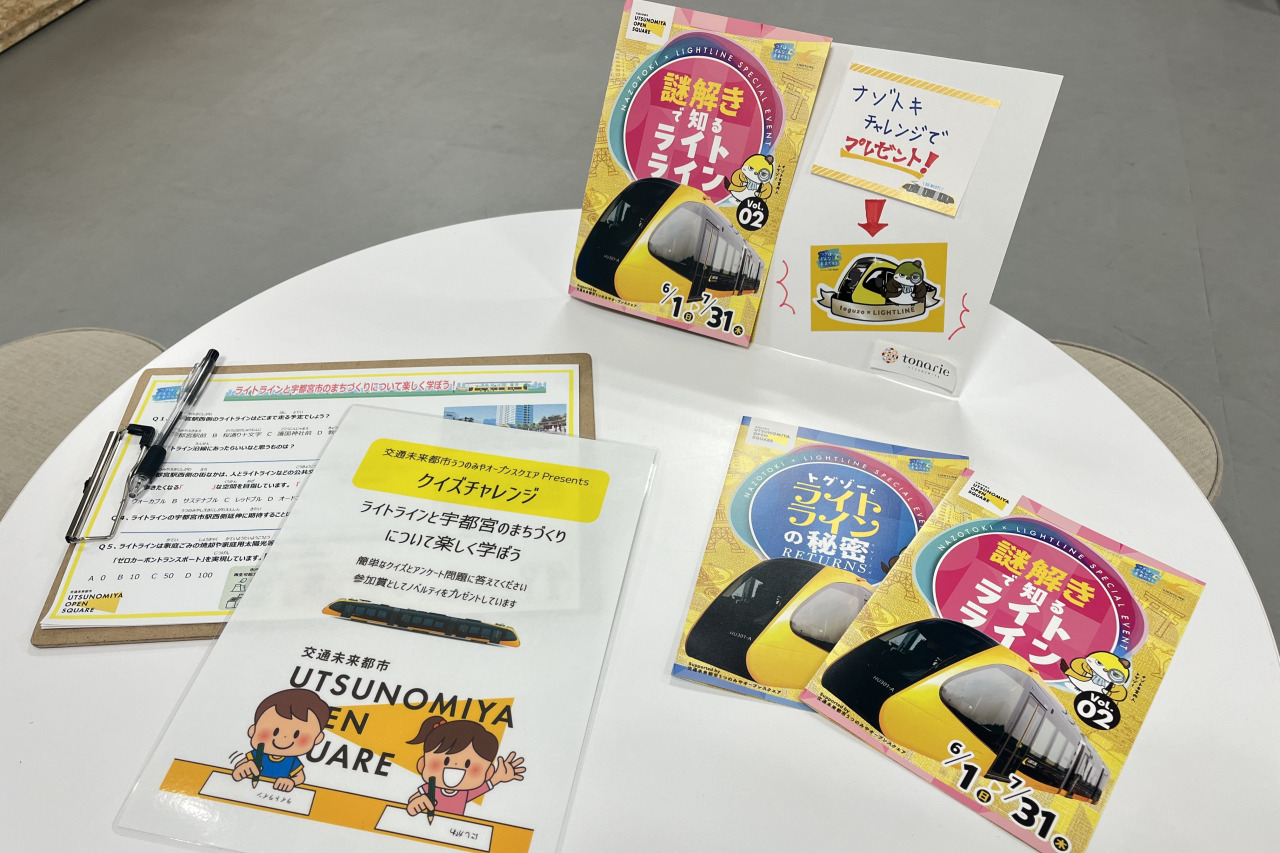 ここでは、ライトラインの特徴や工夫を知るだけでなく、JR宇都宮駅の西側への延伸に向けた未来の宇都宮 のまちづくりについて、イメージを膨らませることができます。さらに、ライトラインに関する謎解きやクイズなども用意されており、ご家族で楽しくチャレンジすることができたり、ライトラインの駅西側延伸を応援する「teamNEXT +」に加入して、ポイントをためるとオリジナルグッズをゲットできたりするなど、ライトラインに関連する様々なことを楽しみながら学ぶことができます!