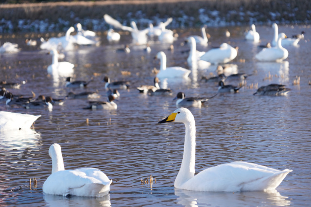 宇都宮市の下ケ橋町には白鳥が飛来し、越冬のために羽を休めている水田があります。