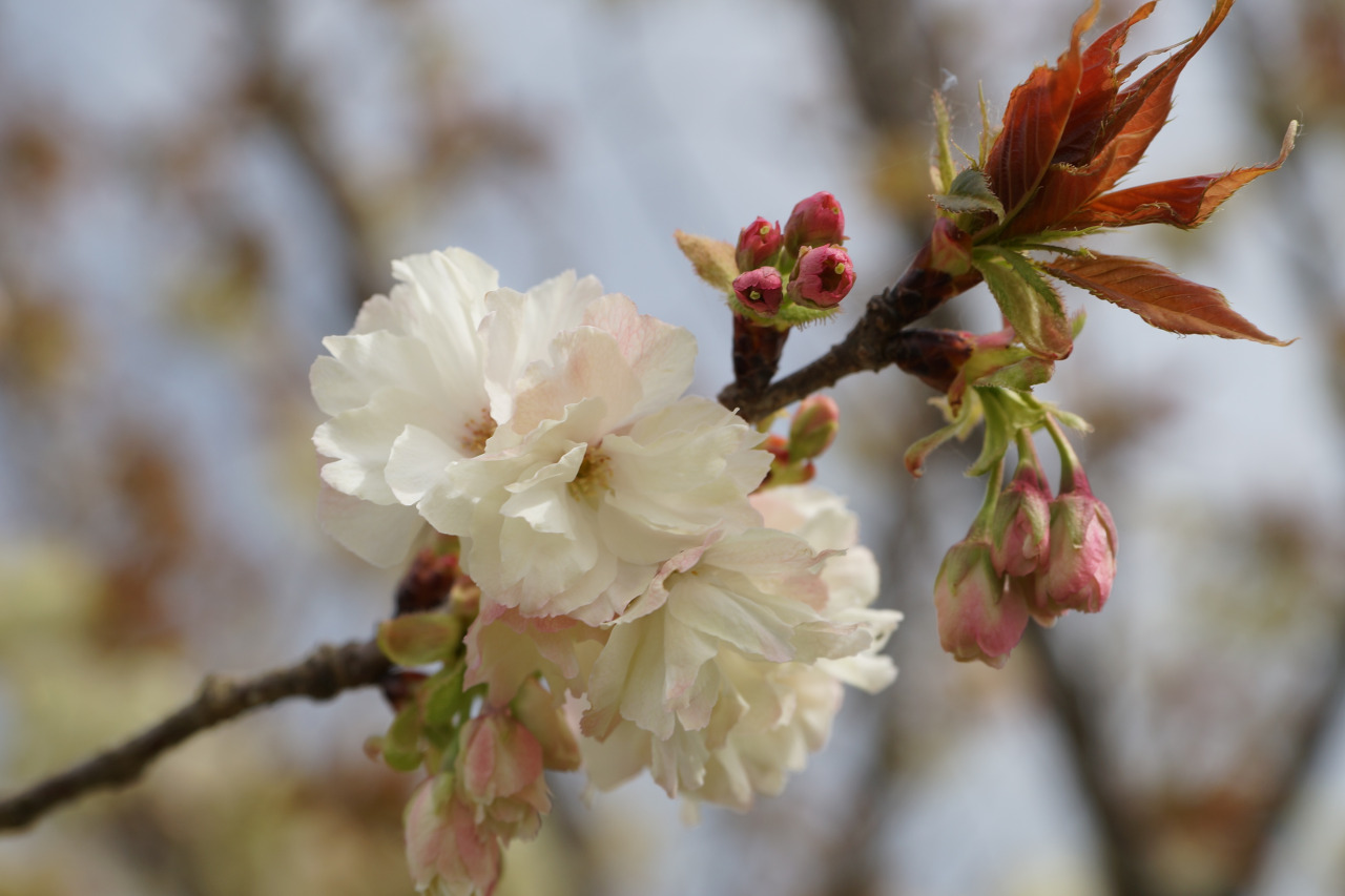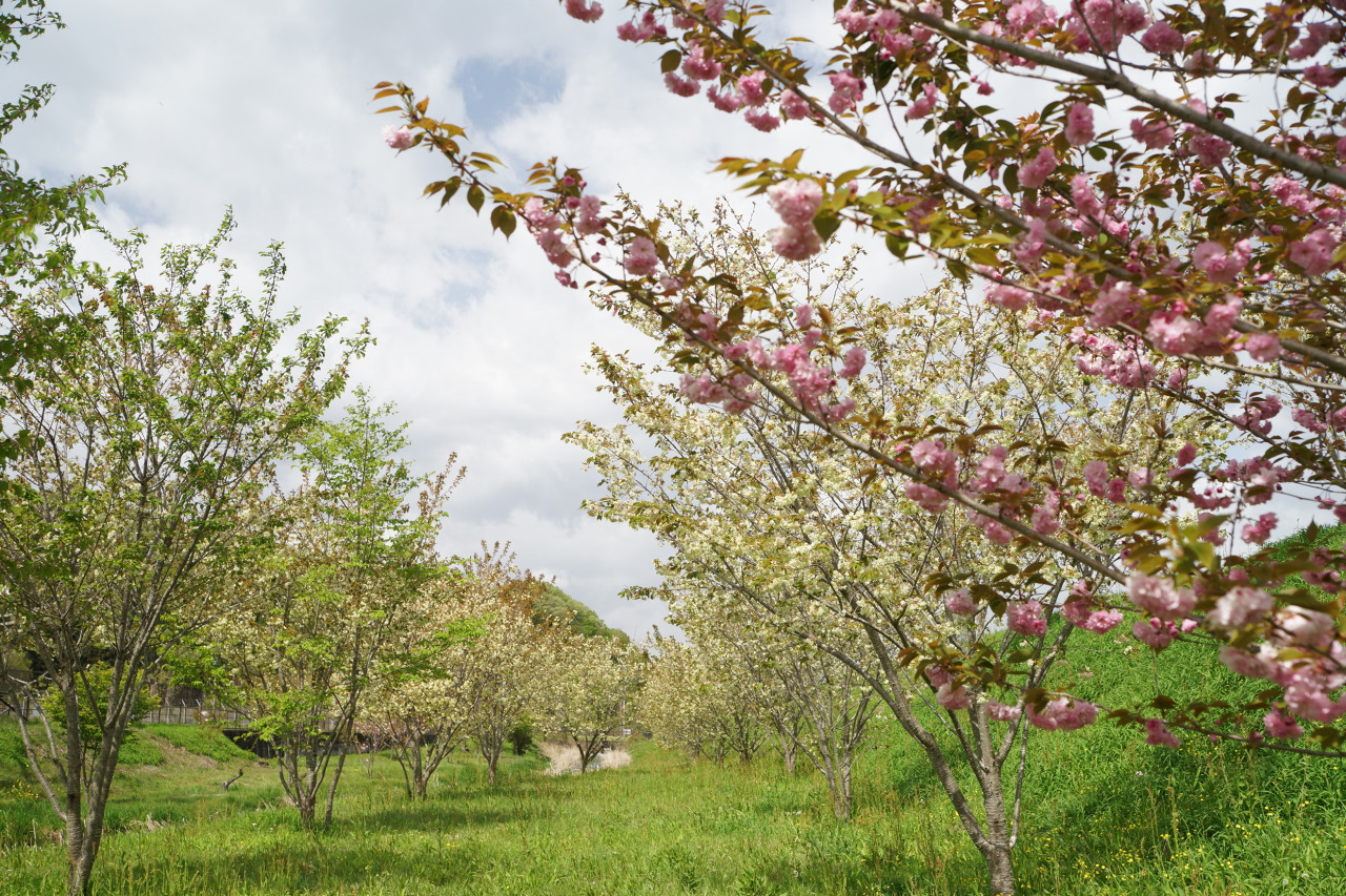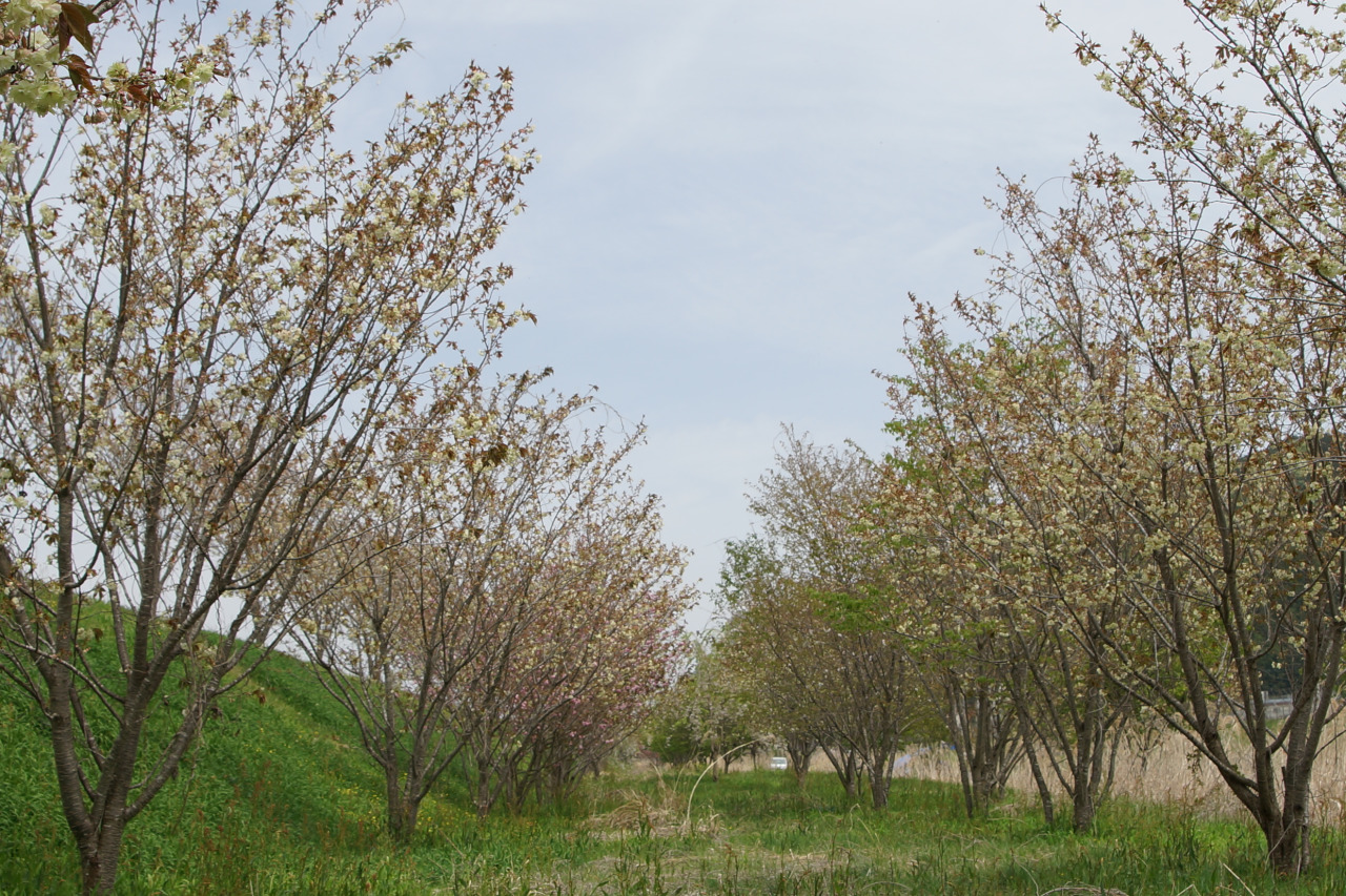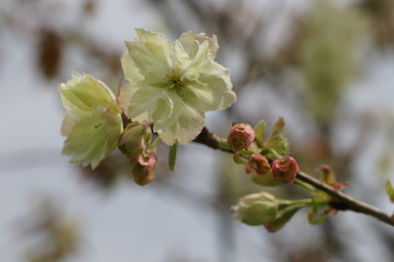 珍しい薄黄緑色の桜並木