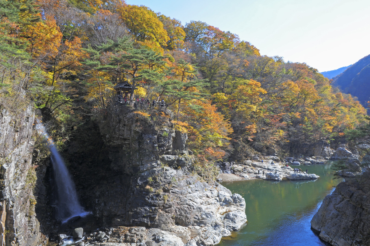 歩きやすい遊歩道が整備されており、春の新緑、秋の鮮やかな紅葉と、四季折々の表情を楽しみながら散策できます。都心からのアクセスも良く、東武鉄道の「龍王峡駅」を下りてすぐという手軽さも魅力です。