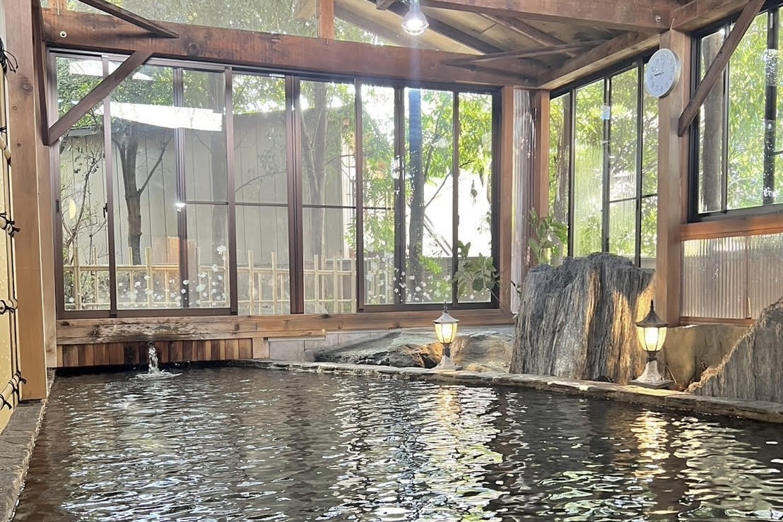 郊外にひっそり佇む源泉かけ流しの日帰り温泉