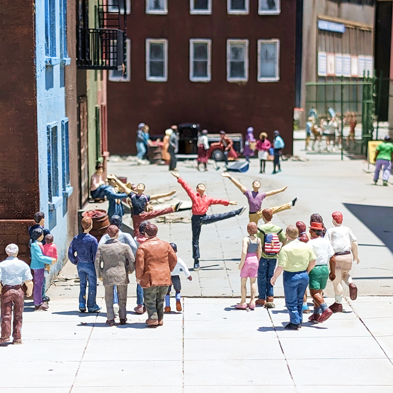 建物はもちろん、街に暮らすミニチュアの住人たちにも注目です。一人ひとり表情や服装が異なり、有名な映画のキャラクターや歴史上の人物が紛れ込むなど、遊び心いっぱい。住民たちの目線まで下げて撮影すると、まるで自分が街に入り込んだようなユニークな写真が撮れます。