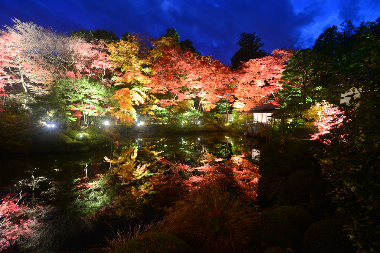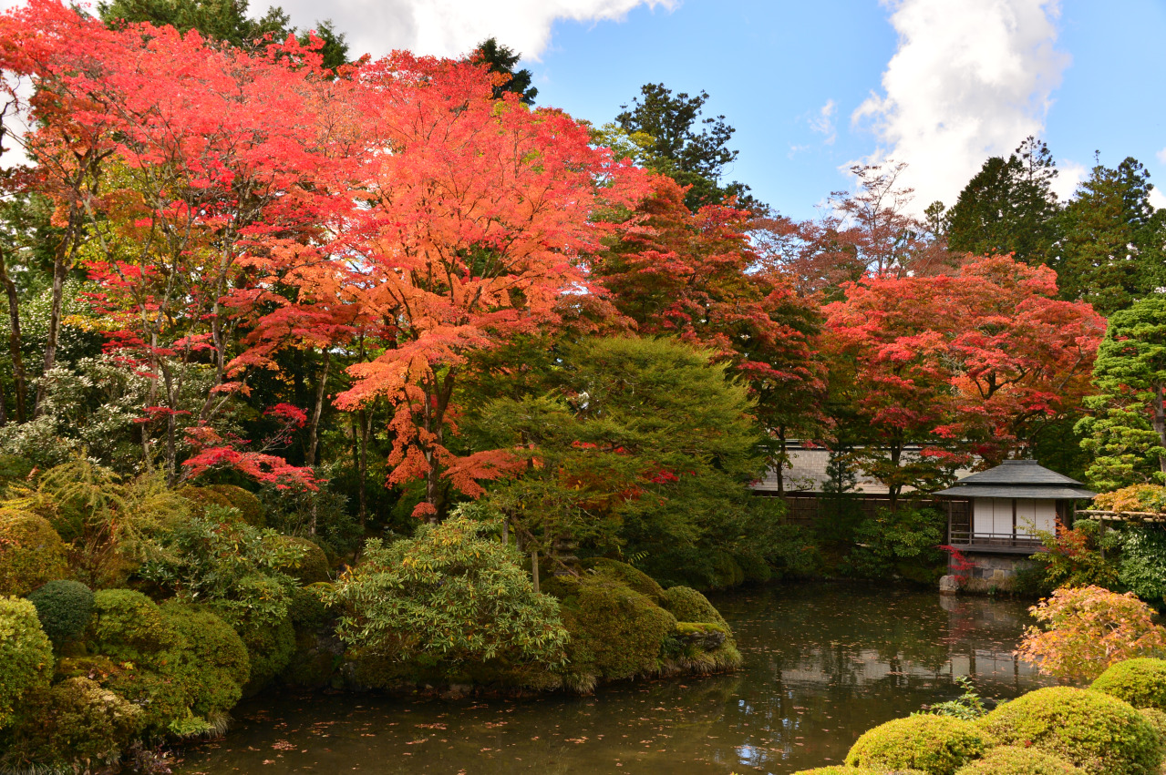 広大な寺域には、「宝物殿」や「四本龍寺(しほんりゅうじ)」、「慈眼堂」などが点在し、周囲の木立と調和した荘厳な雰囲気を醸し出します。近江八景の琵琶湖を模したといわれる「逍遥園(しょうようえん)」は、四季を通じて楽しめる池泉回遊式の庭園です。秋は紅葉ライトアップもあり、訪れる人々の目を楽しませてくれます。