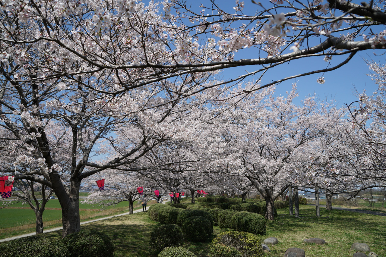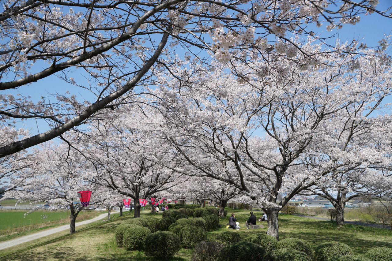 住宅街から少し離れた田園地帯を流れる西鬼怒川沿いのため、非常に静かで落ち着いた雰囲気の中でお花見が楽しめます。
