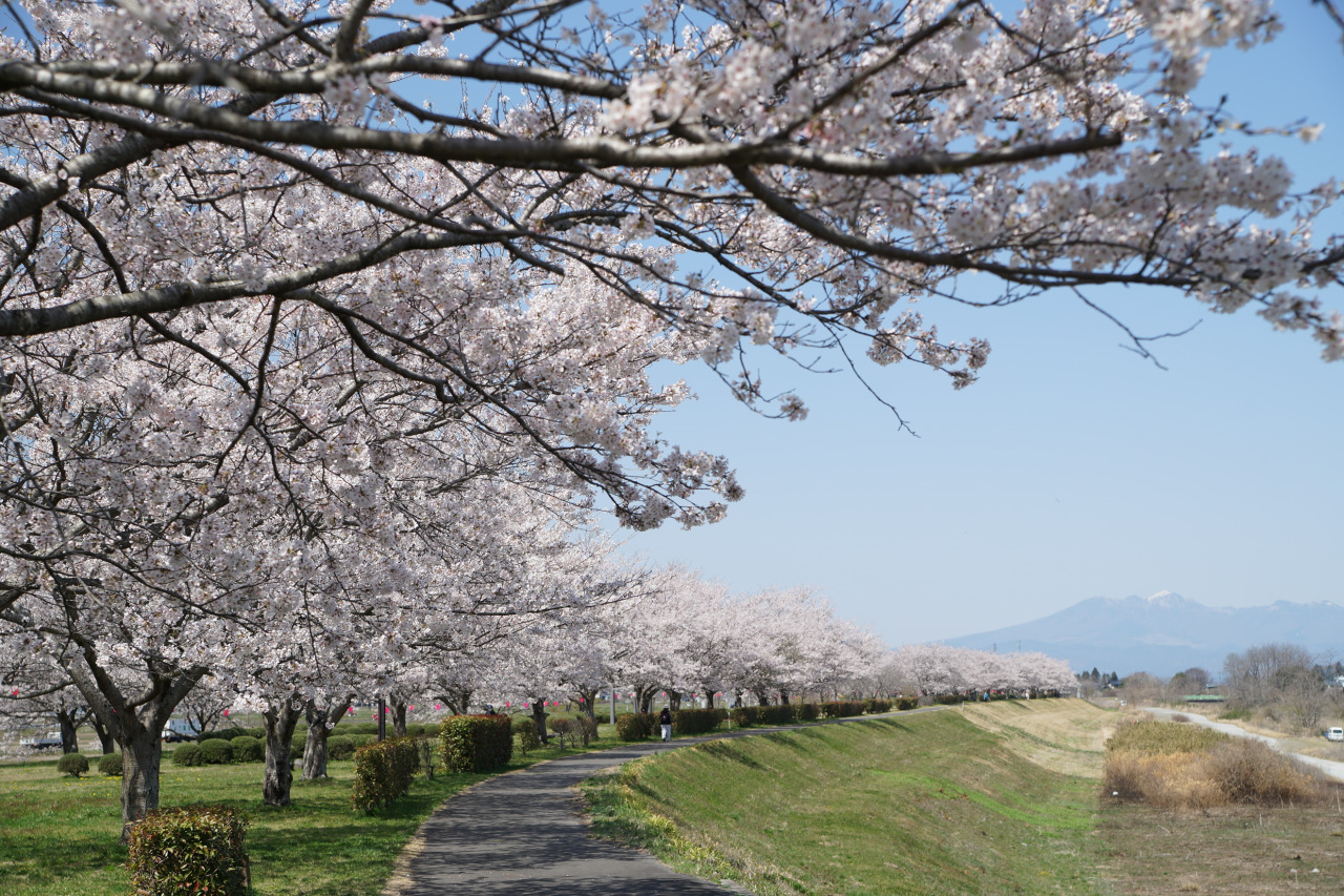 宇都宮市白沢町付近の、西鬼怒川に沿って約1kmの桜並木が続いています。ヤマザクラ、ソメイヨシノ、サトザクラ合わせて200本以上が植栽されています。
